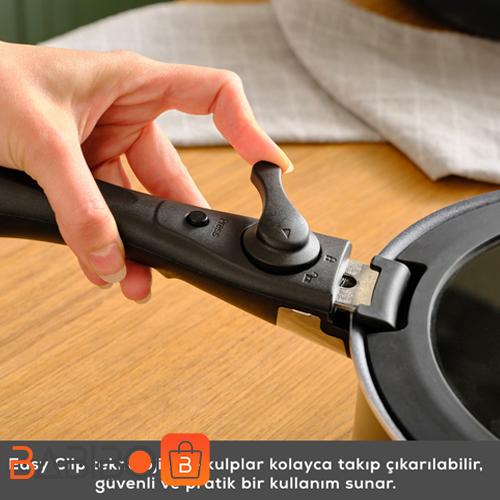 دسته‌های دوگانه قابل جدا شدن با تمام قطعات سازگار هستند و به راحتی قفل و باز می‌شوند. این ویژگی باعث می‌شود بتوانید قابلمه‌ها را به صورت تودرتو نگهداری کرده و فضای زیادی در کابینت صرفه‌جویی کنید. همچنین، دسته‌ها قابلیت جدا شدن، استفاده از قابلمه‌ها در فر را امکان‌پذیر می‌کند.